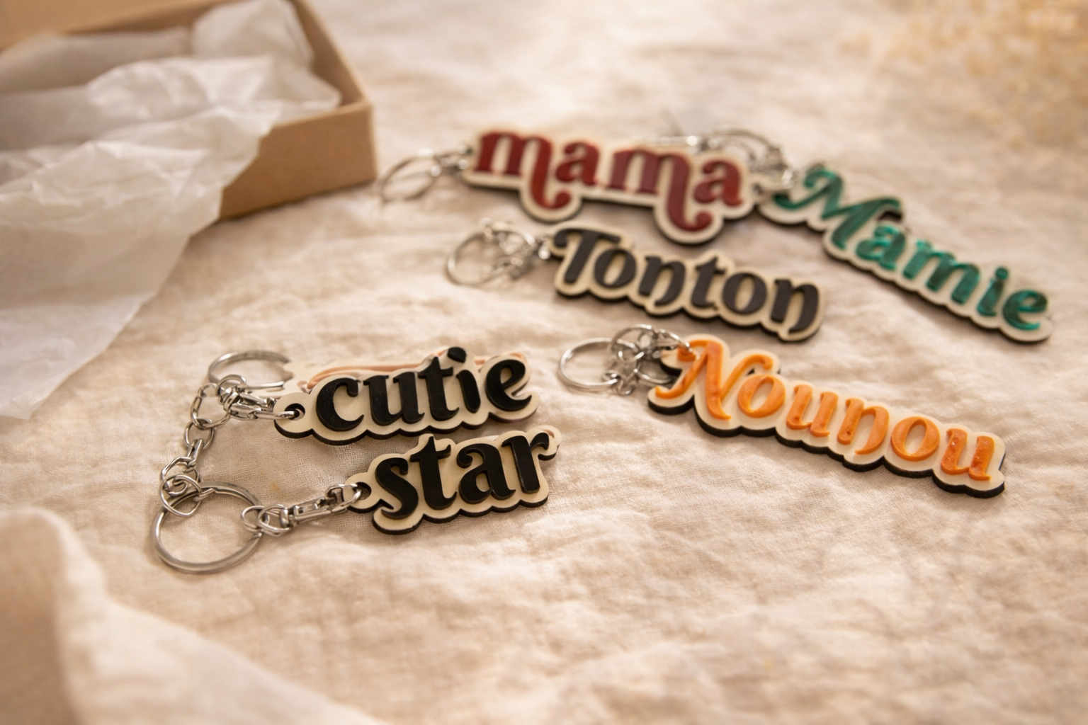 Si tu cherches une idée cadeau fête des mères originale, un cadeau naissance personnalisé avec prénom, ou encore un cadeau de fin d’année pour maîtresse ou nounou, ce porte-clé est une option simple qui fait toujours plaisir.
