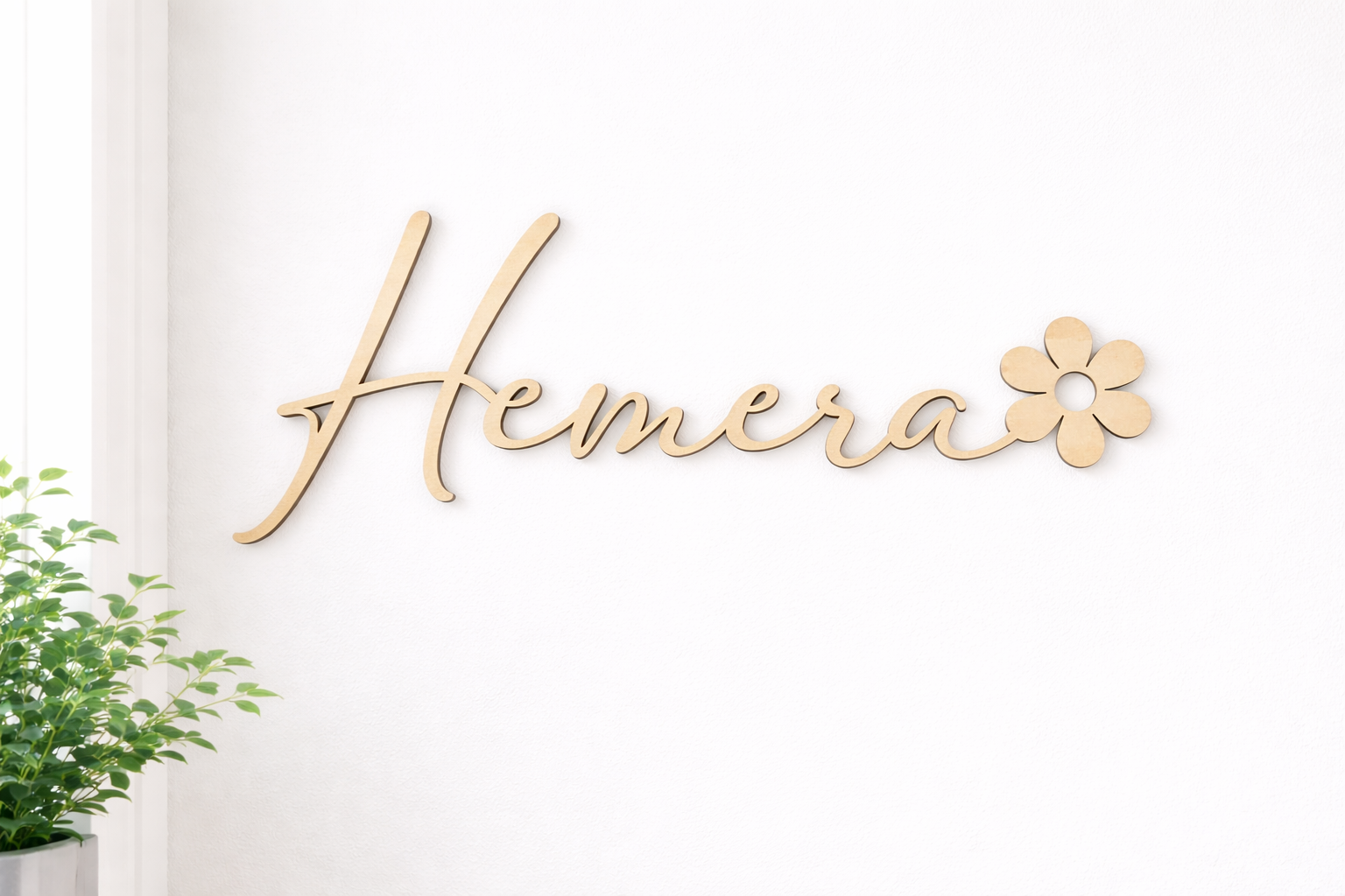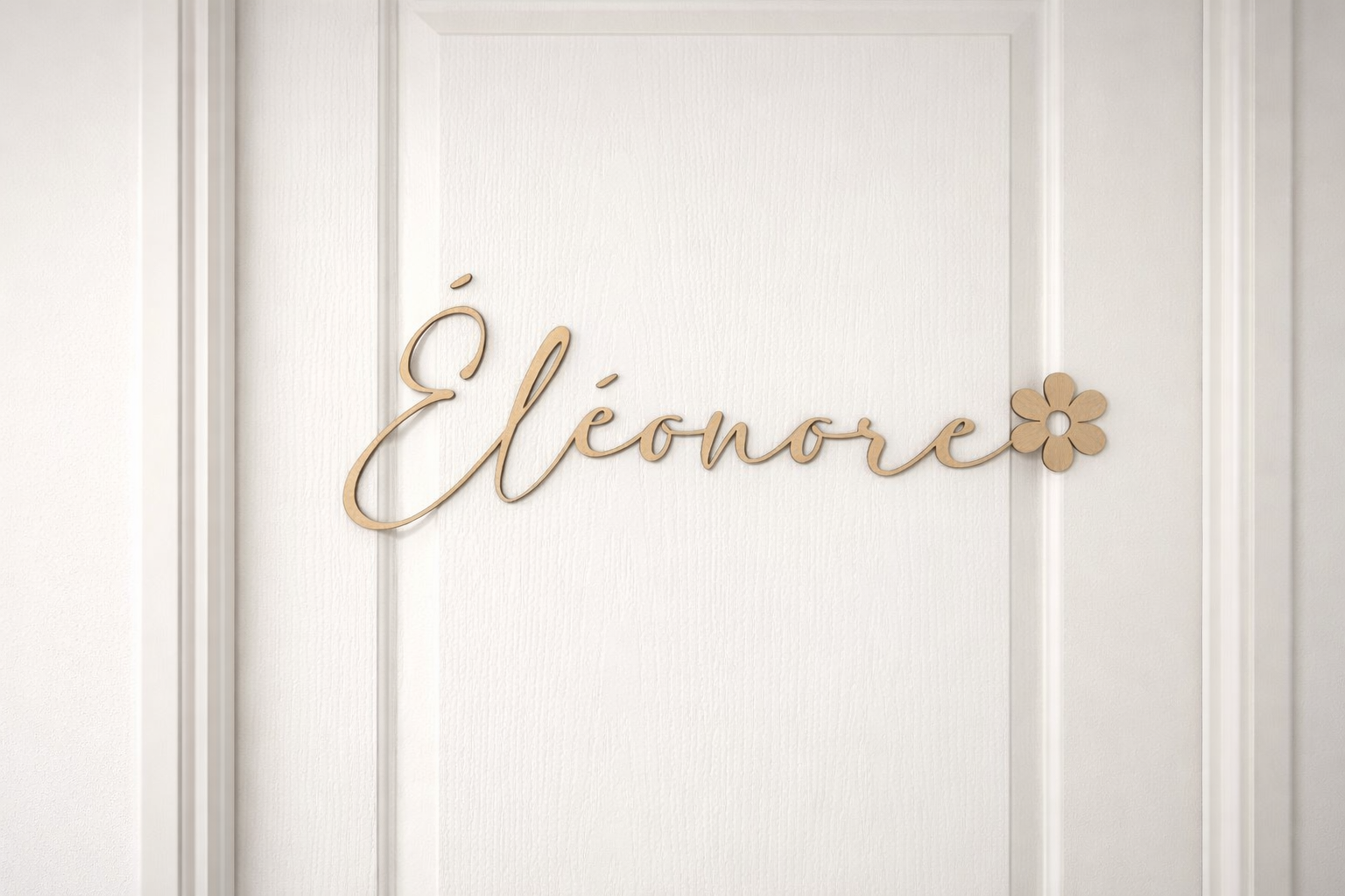 Chaque pièce est découpée avec soin dans un bois clair naturel, et une jolie fleur vient délicatement orner le prénom, pour une touche bohème et tendre. ✨